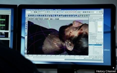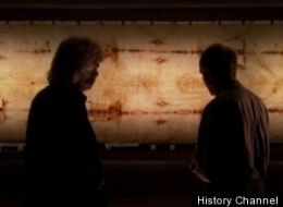 | Dua seniman digital sedang memperhatikan Kain Kafan Turin - pic by History Channel |